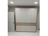 - Шкаф выполнен полностью без ручек, все его элементы открываются за фасад. Для этого предусмотрены специальные зазоры между фасадами, прикрытые декоративными планками
